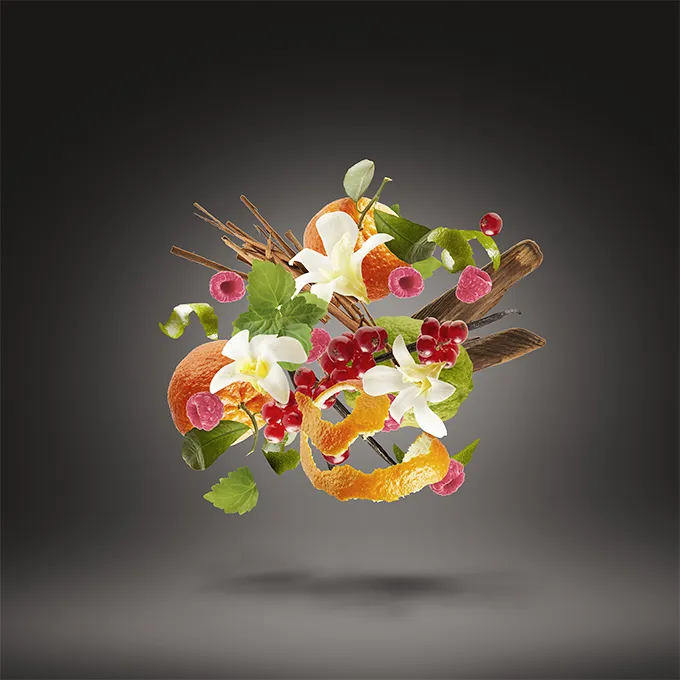 NoirDeNoir sprigiona note gourmand fruttate e succose, animate dalla vivacità del mandarino e dei frutti rossi.
